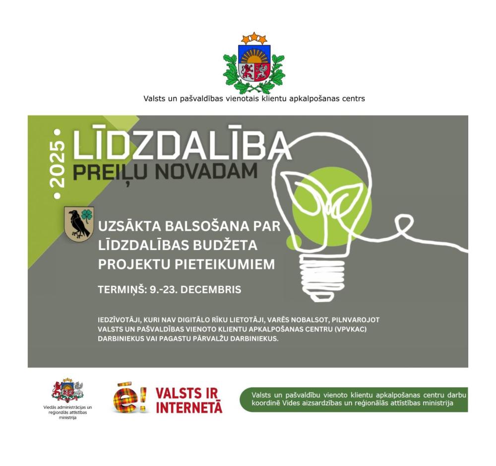 No 9. līdz 23. decembrim notiek iedzīvotāju balsošana par Preiļu novada pašvaldības līdzdalības budžeta projektu pieteikumiem.