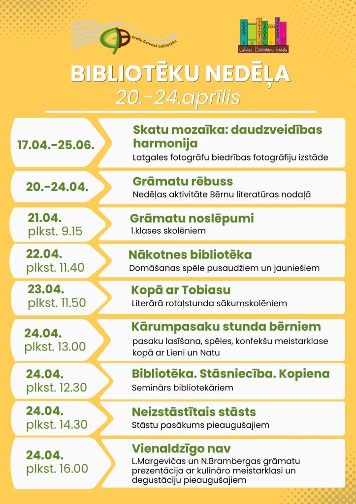 Aicinām iepazīties un apmeklēt Preiļu Galvenās bibliotēkas Bibliotēku nedēļas aktivitātes visas nedēļas garumā.