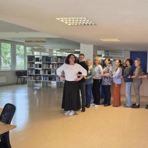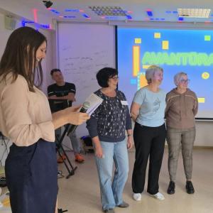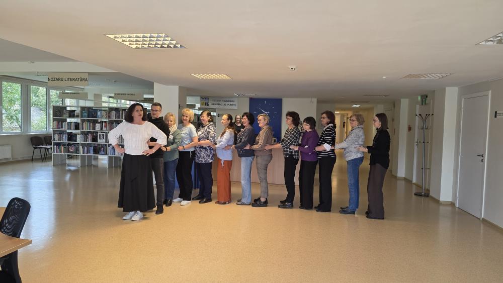 Ludzas bibliotekāri ciemojās Preiļu Galvenajā bibliotēkā uz spēli "Avantūra" 2025-09-26 | Preiļu Galvenā bibliotēka savās telpās ar prieku uzņēma Ludzas bibliotēkas darbiniekus, piedāvājot viņiem iespēju piedalīties īpašā, sadarbību un draudzību veicinošā pasākumā. Preiļu Galvenās bibliotēkas darbinieces bija sagatavojušas aizraujošu komandu spēli “Avantūra”, kuras mērķis bija saliedēt Ludzas bibliotēkas kolektīvu, radīt kopības sajūtu un ļaut ikdienas darbus uz brīdi nomainīt pret prieku, radošumu un kopīgiem piedzīvojumiem. Dalībnieki tika sadalīti trīs komandās, kas entuziastiski iesaistījās dažādos uzdevumos, pārbaudot gan atjautību, gan sadarbības prasmes, gan spēju radoši pieiet uzdevumu risināšanai. Katrā spēles posmā valdīja azarts, smiekli un draudzīga sacensība. Pasākumu bagātināja arī muzikālie priekšnesumi, kas radīja svētku sajūtu un piešķīra īpašu emocionālu pieskaņu šim kopā būšanas brīdim. Klātesošie tika iesaistīti arī citās aktivitātēs, kas palīdzēja atklāt kolēģus no jauna – kā radošas, dzīvespriecīgas un atvērtas personības. Šī tikšanās bija ne tikai lieliska iespēja saliedēt Ludzas bibliotēkas kolektīvu, bet arī apliecinājums tam, cik nozīmīga ir draudzīga un cieša sadarbība starp bibliotēkām! | |