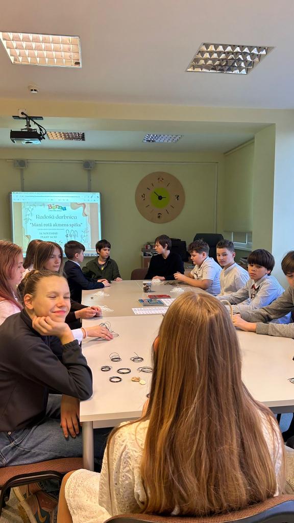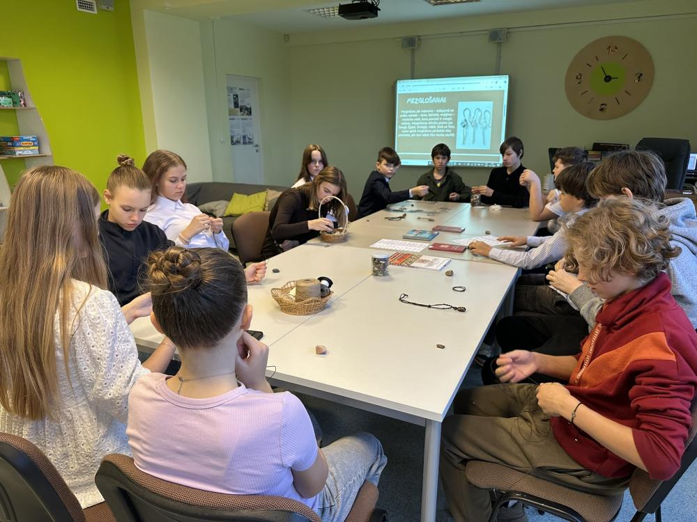 Bērnu literatūras nodaļā 14.novembrī notika radošā darbnīca, kurā piedalījās Preiļu 1.pamatskolas 6.a klase. Ikvienam bija iespēja iepīt savu spēka akmeni kaklarotā, izmantojot dažādas mezglošanas tehnikas.