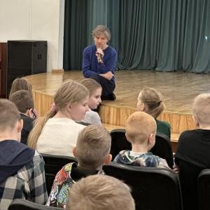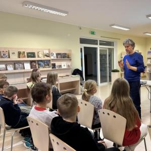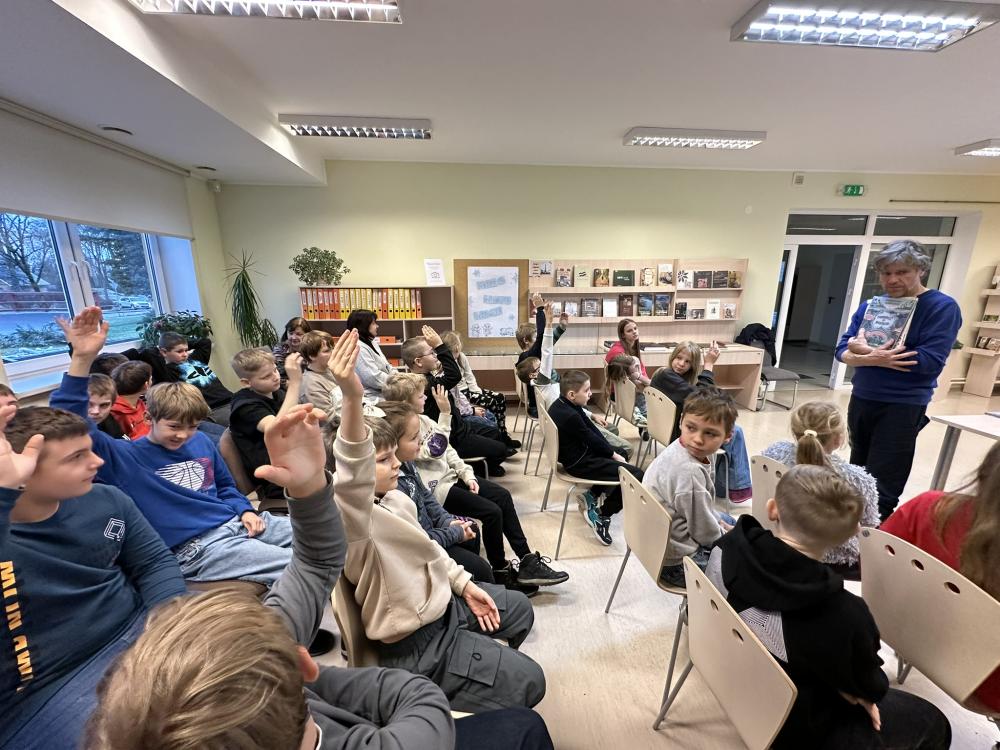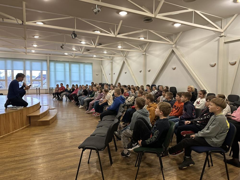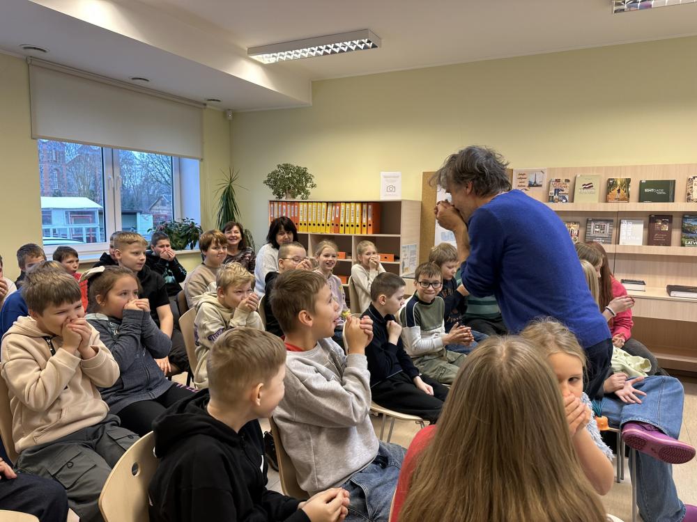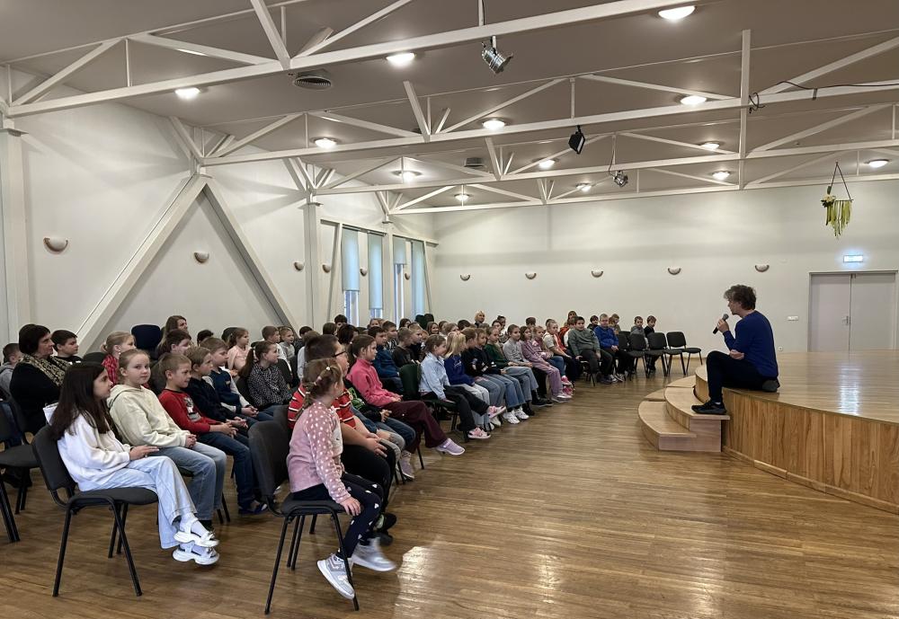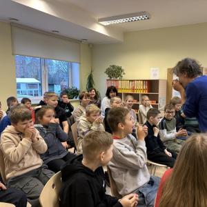 Tikšanās notika Preiļu 1.pamatskolas 3. klašu skolēniem un vēlāk arī Riebiņu bibliotēkā 3. - 6. klašu grupām.