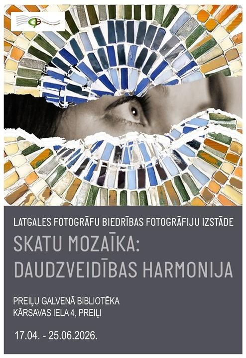| No 2026. gada 17. aprīļa līdz 25. jūnijam Preiļu Galvenajā bibliotēkā, 2.stāva abonementā, būs skatāma Latgales Fotogrāfu biedrības fotogrāfiju izstāde “Skatu mozaīka: daudzveidības harmonija”.